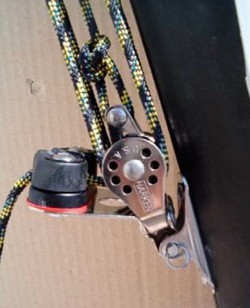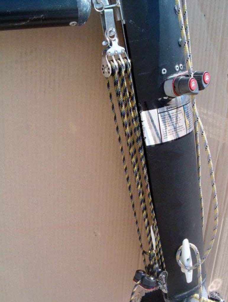 a)The upgraded downhaul system shall be as supplied by HOBIE CAT CO and shall not exceed 6:1 purchase. The system shall not be reversed and must be used with the cleat at the lower end of the system.